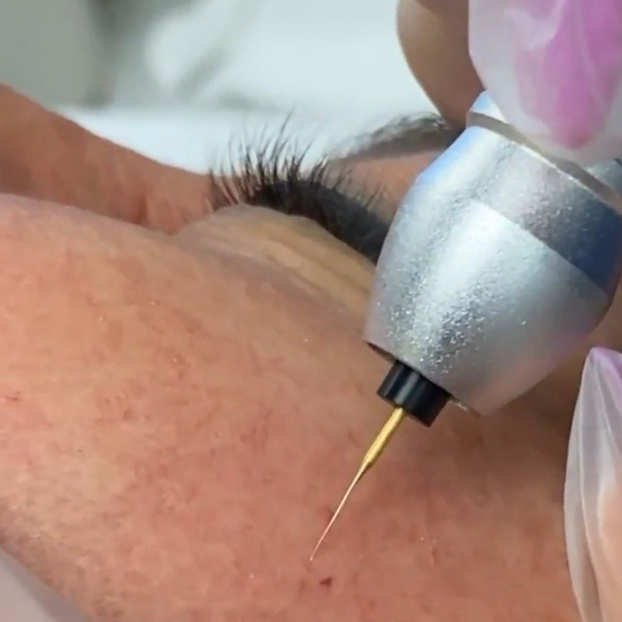 Altın iğne cihazı, cilt yüzeyine mikro kanallar açar. Bu kanallardan verilen radyo frekans enerjisi damar duvarlarını sıkılaştırır ve yüzeydeki kırmızı-mor görünümü azaltır.